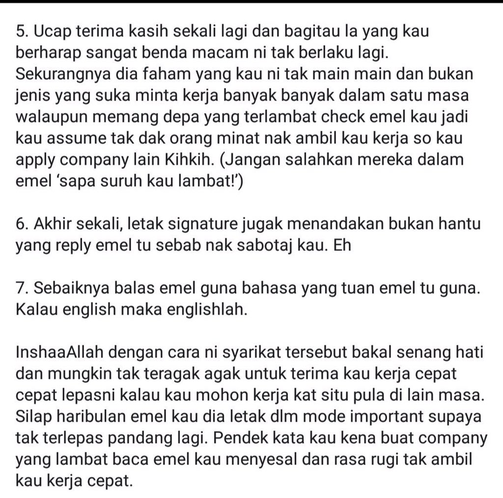 Ertinya tangguhkan dahulu apa-apa aktiviti yang tidak menyebabkan kematian seperti memotong rambut membeli makanan yang sedap-sedap atau segar dengan berbondong di pasar-pasar meminta pelajar yang terperangkap di kolej-kolej untuk pulang kampung- tangguhkan dahulu semua itu sehingga fasa 3 PKP tamat. Apa itu sabotase. Tetapi apa pun pekerjaan yang dilakukan dan diterima harus dibarengi dengan sikap sabar.